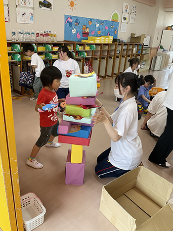 2年次の実習では、幼稚園実習を4週間、施設実習を3週間、保育園実習を2週間×2(計4週間)で行います。入学時は多くの学生が「保育者になる」という目標で入学していますが、実習で様々な経験を積み、沢山の子どもたちと出会った結果、「乳児院や児童養護施設で働きたい」と最終目標を変更する学生も多くいます。入学当初の視野は狭いですが、実習を機に視野が広がることで、自分を必要としてくれる人がいることを知り、自分に合っている仕事を選べるというのも本学院の魅力です。